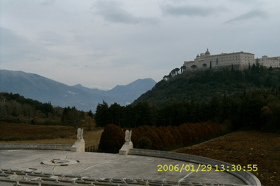 The modern abbey of Monte Cassino. Source: Martin Collin, Wikimedia, https://commons.wikimedia.org/wiki/File:View_of_Monte_Cassino_monastery_from_Polish_cemetery.jpg, accessed 25.i.2026.