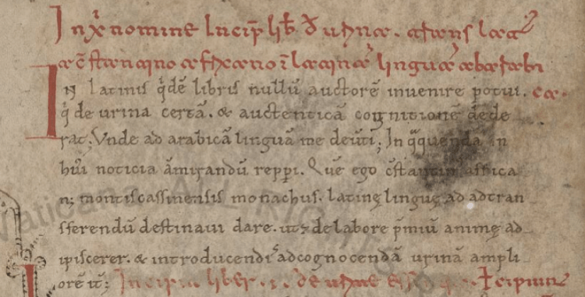 An obit is the opposite of a birthday. It is an occasion to recall those in a religious community who died on that day in years past, and say prayers or a Mass in their memory. December 22 is the obit day for Constantine the African, the eleventh-century Tunisian immigrant and Benedictine monk who was the very first to render the wealth of Arabic medical writing into Latin.1 Today, a year since we launched our blog, we are memorializing Constantine’s life in our own way, by giving thought to his significance as a historical figure. But instead of making a plea for his importance, what if we look at him the other way round, as an “opposite,” an anti-hero of sorts? After all, we’ve emphasized his sustained importance both in the Middle Ages and beyond, and we’ve even cast him as a “star” who was simultaneously fomenting a “revolution” in medieval medicine. But no one is using Constantine’s works to practice medicine nowadays, so why all of the hullabaloo over Constantine?